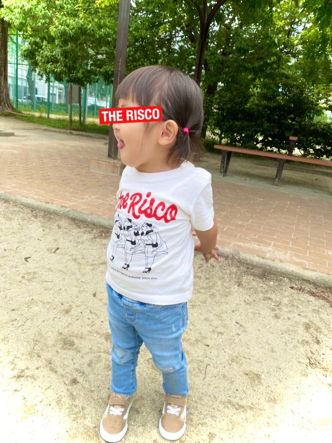実際にケチャップでTHE RISCOと描いたかわいい文字をそのままデザインに落とし込んだプリントはキッズT、ロンパースだけのオリジナル!